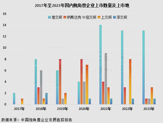 独角兽企业也会迈入赴资本市场上市的阶段,能筹集资金,快速扩张和抢占市场。数据显示,在纽交所、纳斯达克、上交所、深交所、港交所中,港交所是近期独角兽企业上市最热门的交易所,15-30亿美元估值的中型独角兽更青睐香港上市。