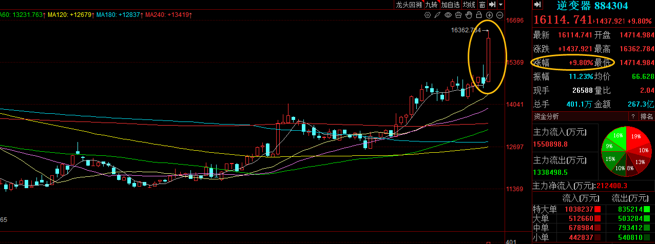 今天领涨的是反内卷中的光伏新能源方向。光伏中最强的细分是逆变器。