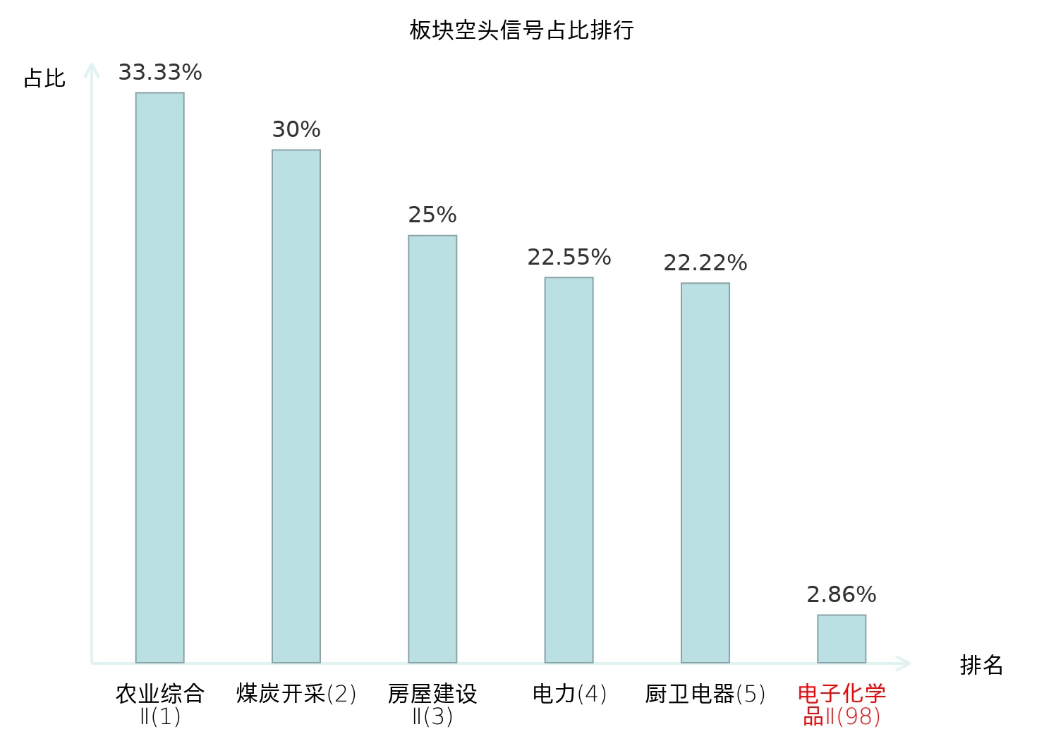 全市场所有行业板块中主力空头信号占比排名中,农业综合Ⅱ板块位居第一。旅游及景区板块名次提升最快,较昨日上升112位。