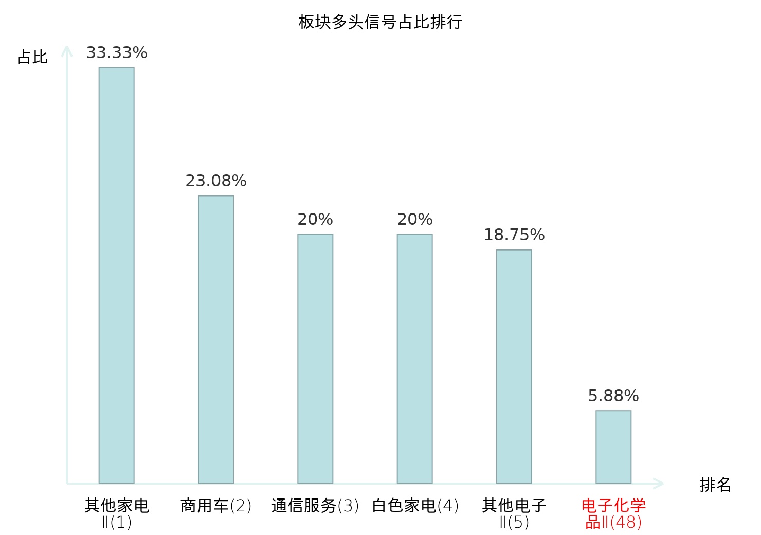 全市场所有行业板块中主力多头信号占比排名中,其他家电Ⅱ板块位居第一。其他家电Ⅱ板块名次提升最快,较昨日上升129位。