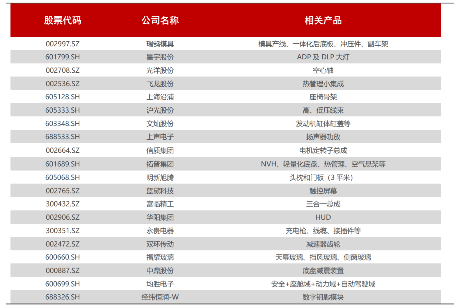 智驾视觉传感器:联创电子、韦尔股份、思特威、格科微、晶方科技;