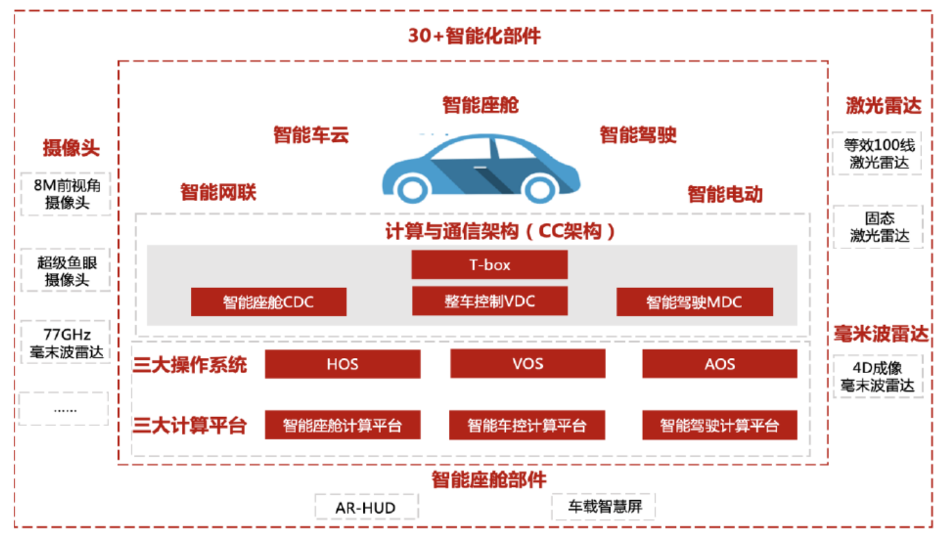 华为针对汽车领域构建了云服务、智能互联、智能能源、智能网联以及智能驾驶的生态化布局。在传感器方面,华为具备领先行业的激光雷达等硬件传感器量产能力,并已适配国内复杂路况。