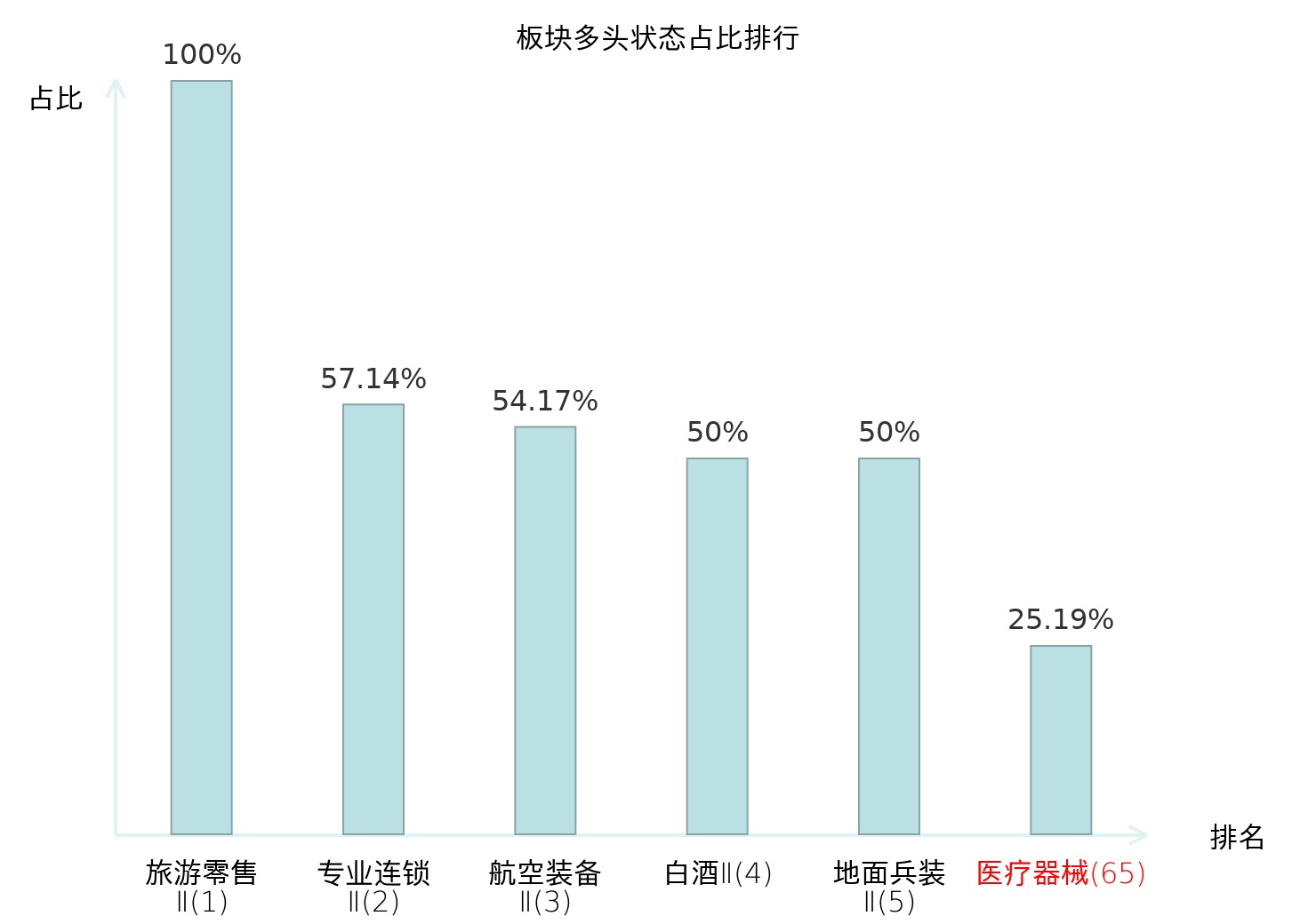 全市场所有行业板块中主力多头状态占比排名中,旅游零售Ⅱ板块位居第一。游戏Ⅱ板块名次提升最快,较昨日上升102位。