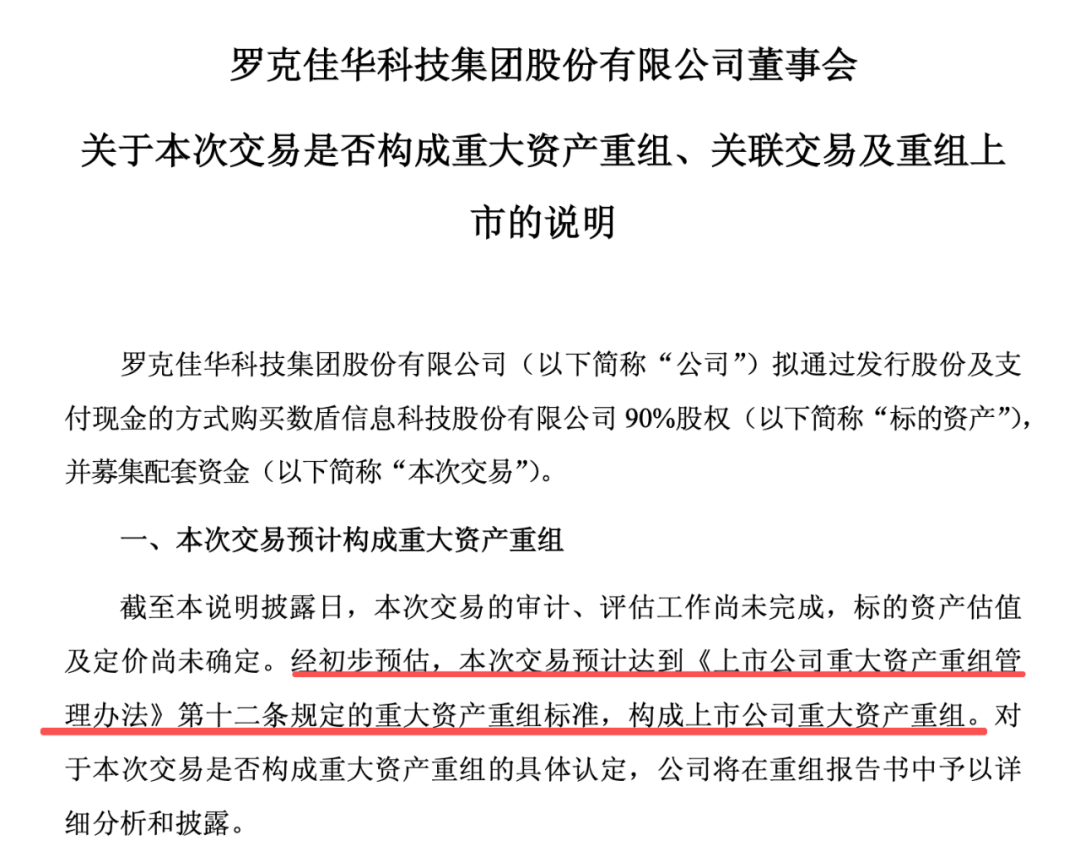 佳华科技12月5日披露交易预案,公司拟通过发行股份及支付现金的方式向朱云等49名交易对方购买其持有的数盾科技90%股份,并募集配套资金。本次交易完成后,数盾科技成为上市公司的控股子公司。经向上海证券交易所申请,公司股票将于12月8日开市起复牌。