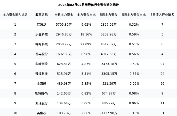 从主力资金流向来看,半导体行业今日主力资金流入63.86亿元,在所有申万二级行业中排名:26/131。