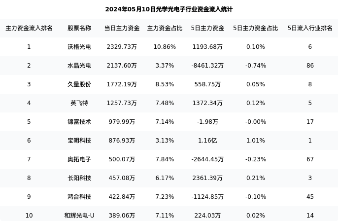 从主力资金流向来看,光学光电子行业今日主力资金流入32.59亿元,在所有申万二级行业中排名:66/131。