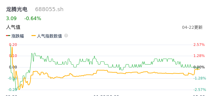 04月22日,龙腾光电收报3.09,股价涨幅-0.64%,成交金额1221.32万元,换手率0.12%。