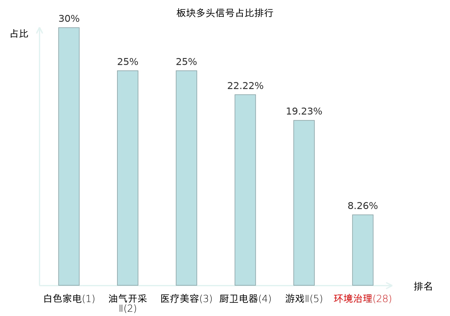 全市场所有行业板块中主力多头信号占比排名中,白色家电板块位居第一。油气开采Ⅱ板块名次提升最快,较昨日上升125位。
