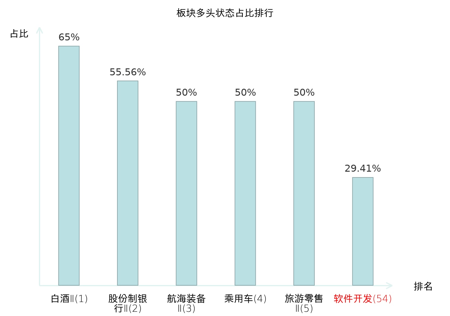 全市场所有行业板块中主力多头状态占比排名中,白酒Ⅱ板块位居第一。其他家电Ⅱ板块名次提升最快,较昨日上升93位。