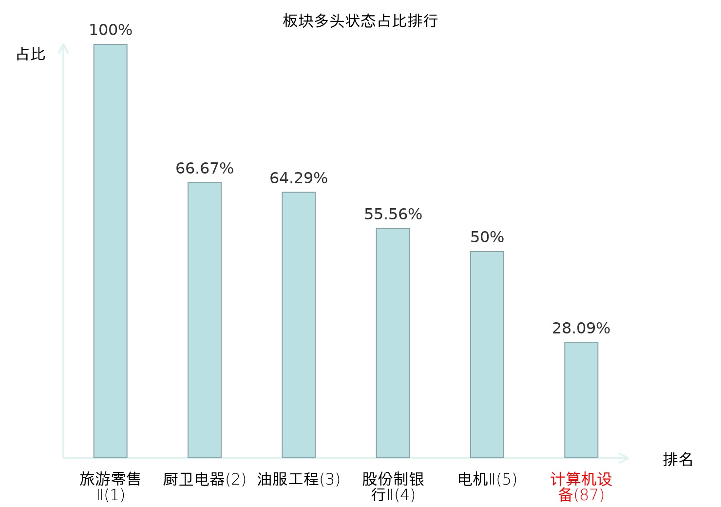 全市场所有行业板块中主力多头状态占比排名中,旅游零售Ⅱ板块位居第一。航海装备Ⅱ板块名次提升最快,较昨日上升78位。