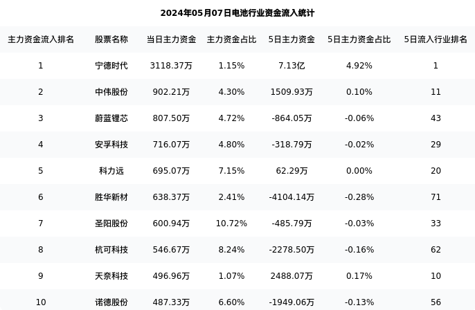 从主力资金流向来看,电池行业今日主力资金流入61.76亿元,在所有申万二级行业中排名:76/131。