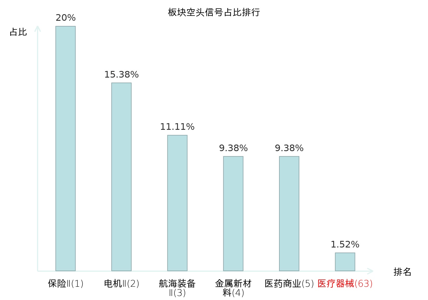 全市场所有行业板块中主力空头信号占比排名中,保险Ⅱ板块位居第一。塑料板块名次提升最快,较昨日上升111位。
