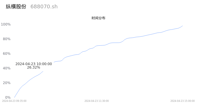 688070纵横股份2024年04月23日成交1.85万手,成交金额7768.75万元,相较昨日缩量7655手,换手率2.11%,成交清淡。