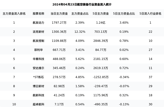 从主力资金流向来看,航空装备行业今日主力资金流入35.10亿元,在所有申万二级行业中排名:131/131。