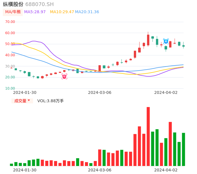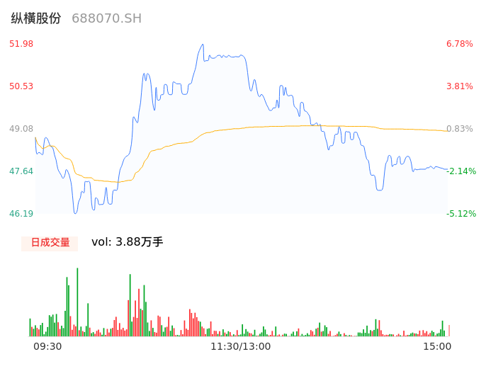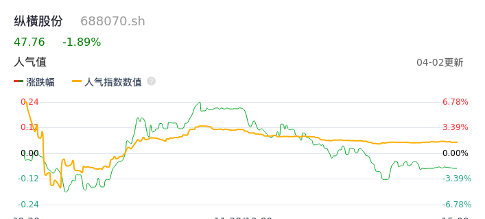 04月02日,纵横股份收报47.76,股价涨幅-1.89%,成交金额1.90亿元,换手率4.43%。