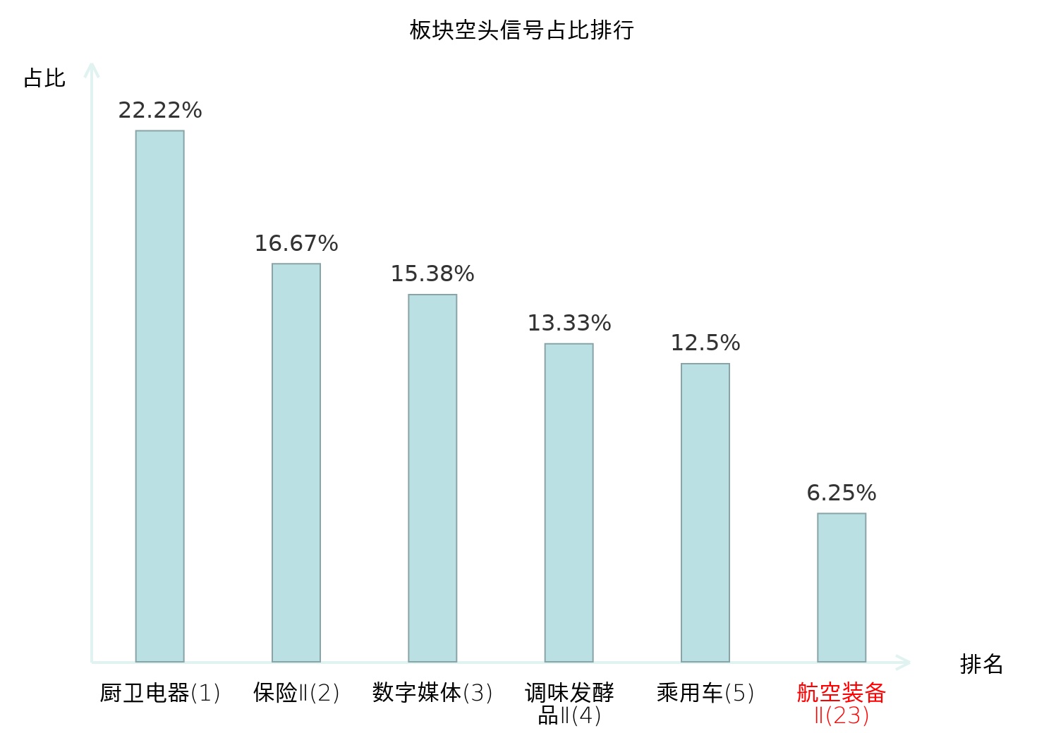 全市场所有行业板块中主力空头信号占比排名中,厨卫电器板块位居第一。教育板块名次提升最快,较昨日上升105位。