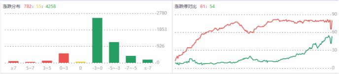 情绪上,今日涨停81家跌停54家,跌停板家数飙升。