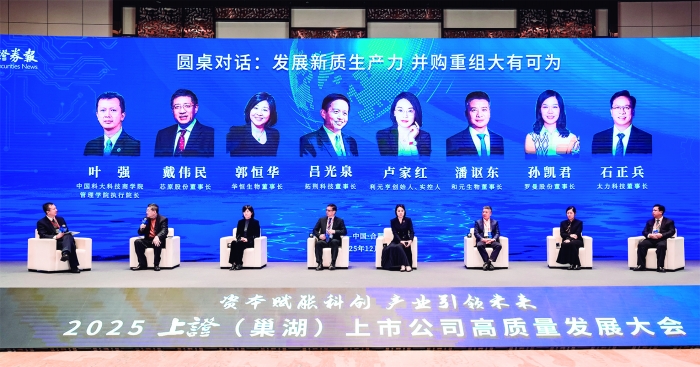 “并购六条”发布以来,上市公司在2025年掀起并购高潮,更具包容性的并购重组制度激活了资本市场新生态。12月7日,在2025上证(巢湖)上市公司高质量发展大会的圆桌对话环节,多位上市公司创始人、董事长围绕新质生产力领域的并购重组展开头脑风暴,共同研判2026年的产业并购新机遇、跨境并购新挑战、并购交易新模式。