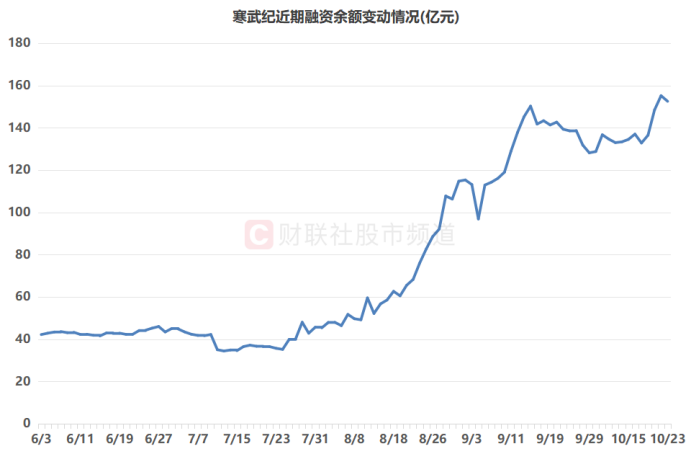 注:寒武纪近期融资余额变动情况(截至10月23日数据)