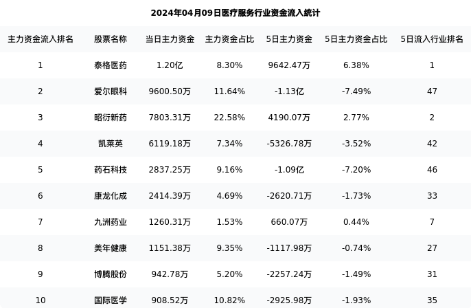 从主力资金流向来看,医疗服务行业今日主力资金流入38.69亿元,在所有申万二级行业中排名:120/131。