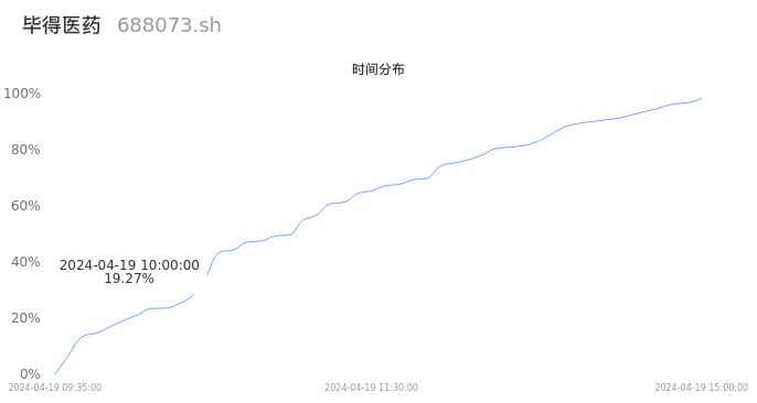 688073毕得医药2024年04月19日成交7344手,成交金额2353.47万元,相较昨日缩量2829手,换手率1.74%,成交清淡。