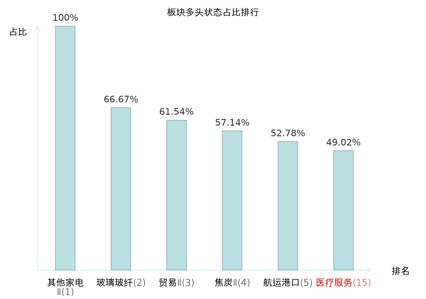 全市场所有行业板块中主力多头状态占比排名中,其他家电Ⅱ板块位居第一。影视院线板块名次提升最快,较昨日上升62位。