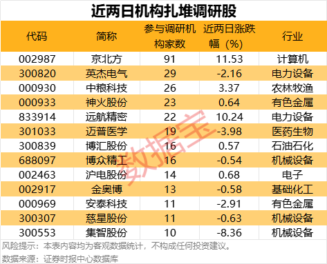 近两日(7月2日至7月3日)共有58家公司公告机构调研记录,其中,13家公司获10家及以上机构扎堆调研。