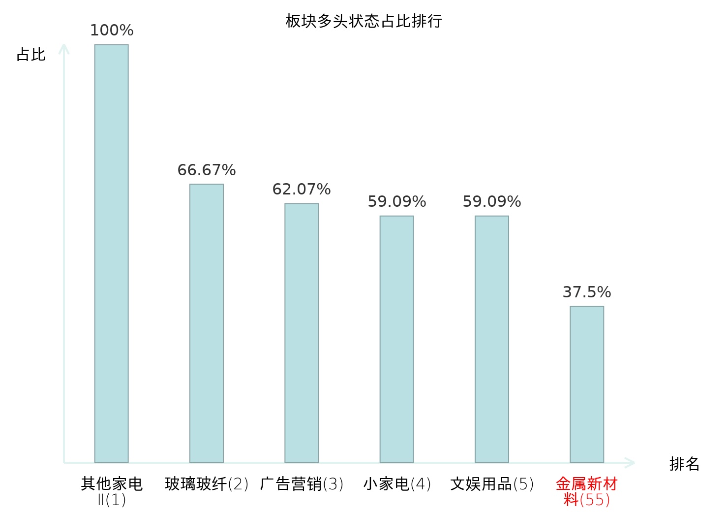 从主力宝信号数据分析,大地熊所属的金属新材料板块中共12只股票处于主力多头状态,主力多头状态占比在全行业中排名第55位,较昨日下降17位。排名较高表明主力对于该板块整体看多意愿较强,此次排名下降可能反映了主力对该板块态度的一些微调。全市场所有行业板块中,其他家电Ⅱ板块的主力多头状态占比最高,位居第一;消费电子板块名次提升最快,较昨日上升54位。这些变动揭示了不同行业间主力资金动向的趋势,为投资者提供了关于市场情绪和潜在投资机会的重要线索。