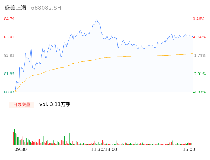 04月29日,盛美上海收报83.89,股价涨幅-0.60%,成交金额2.58亿元,换手率4.10%。