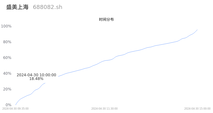 688082盛美上海2024年04月30日成交1.81万手,成交金额1.50亿元,相较昨日缩量1.30万手,换手率2.38%,成交清淡。