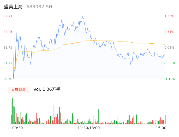 04月25日,盛美上海收报81.44,股价涨幅-0.28%,成交金额8699.36万元,换手率1.40%。