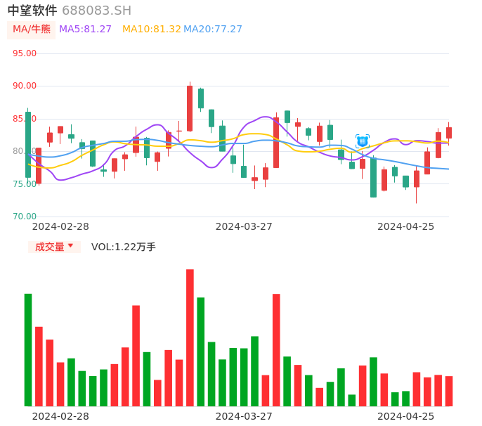 04月25日,中望软件收报83.65,股价涨幅0.92%,成交金额1.02亿元,换手率1.01%。