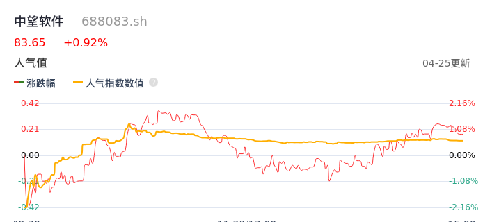 04月25日,中望软件收报83.65,股价涨幅0.92%,成交金额1.02亿元,换手率1.01%。