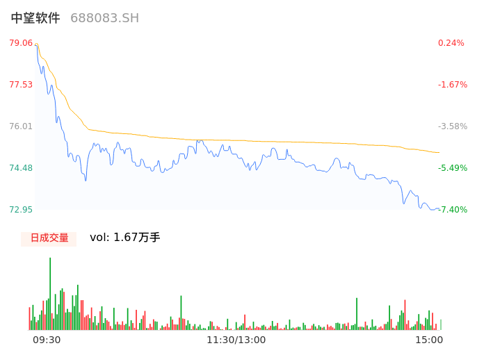 04月16日,中望软件收报72.98,股价涨幅-7.36%,成交金额1.25亿元,换手率1.38%。