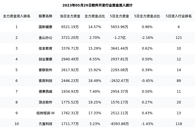 下表为今日行业内流入前10股票的信息
