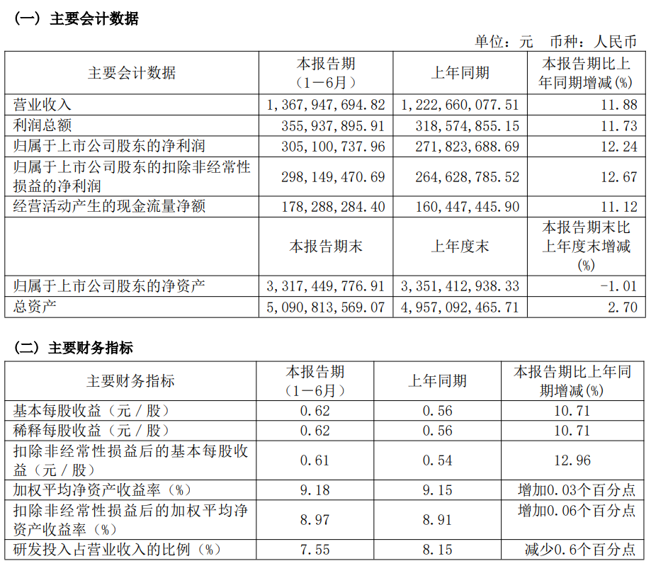 财务状况来看,公司经营质量持续稳健,上半年净资产收益率9.18%、资产负债率34.83%;现金流良好,上半年实现经营性净现金流量1.78亿元,同比优化11.12%。