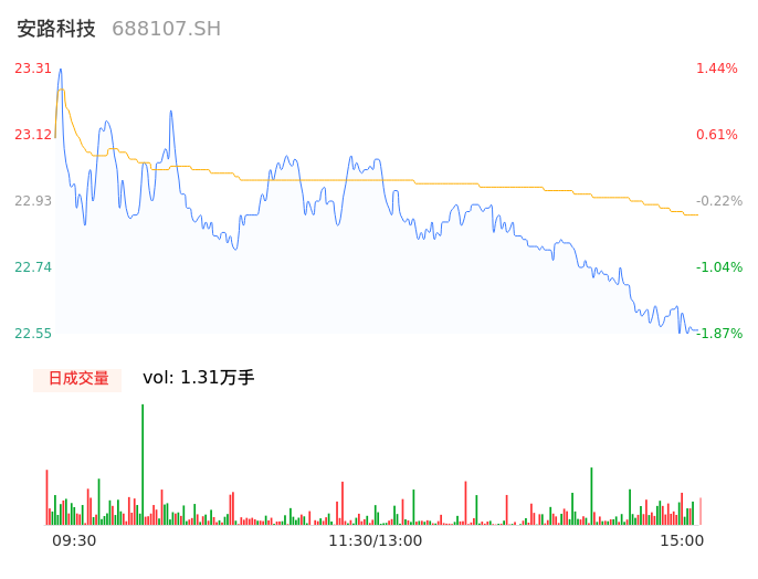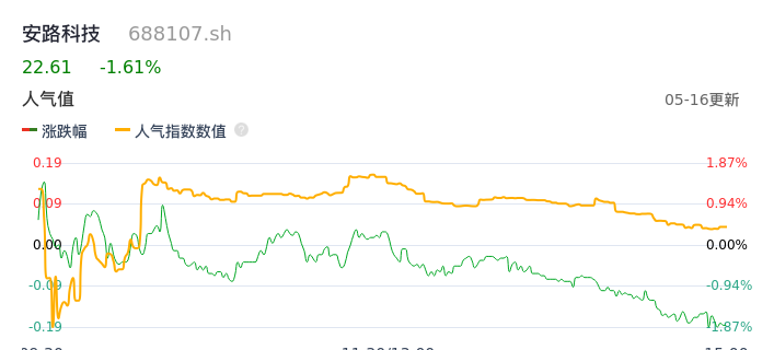 05月16日,安路科技收报22.61,股价涨幅-1.61%,成交金额3007.45万元,换手率0.68%。