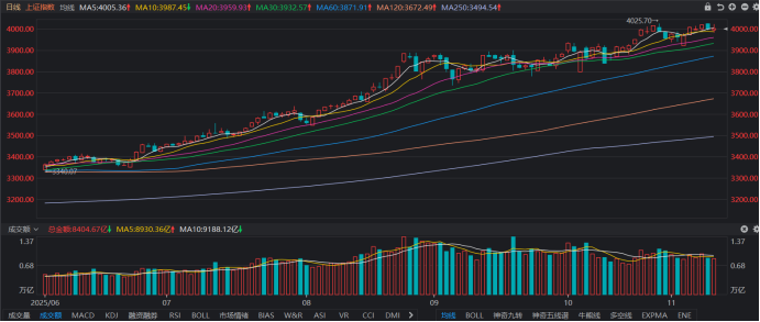 财联社11月12日讯(编辑 梓隆),近期,上证指数在4000点关口附近反复震荡,以10月28日首次突破4000点开始算起,多空双方已在此关键点位持续胶着近半月(12个交易日)。期间,上证指数曾于10月30日上探至4025.70点,为此轮震荡行情中的阶段高点。