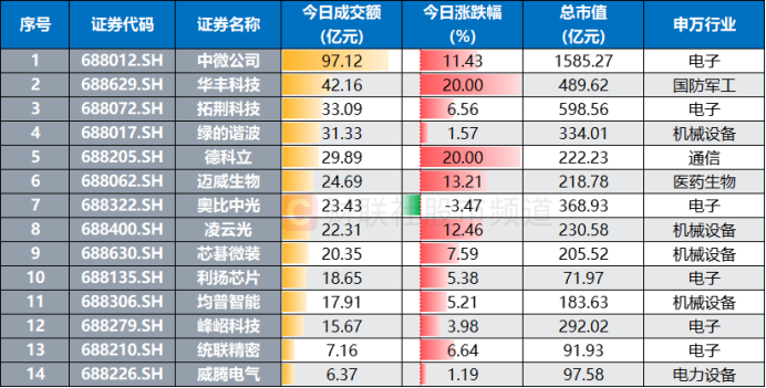 注1:今日成交额创历史新高的科创板股(截至9月18日收盘)