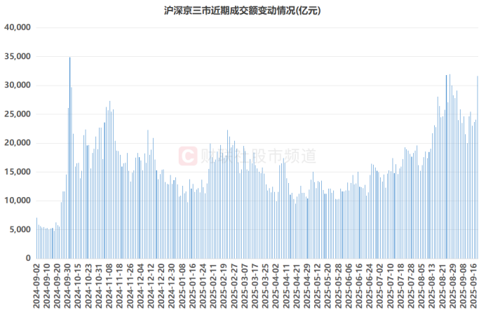 注:沪深京三市近期成交额变动情况(截至9月18日收盘)