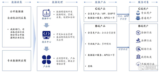 其中,会员类产品通过企查查App、Web端、小程序等渠道登录和使用,具有较强的通用性,主要受众为法律、泛金融等行业的专业人员,以及众多中大型规模企业的销售、采购、财务、法务等职能人员。