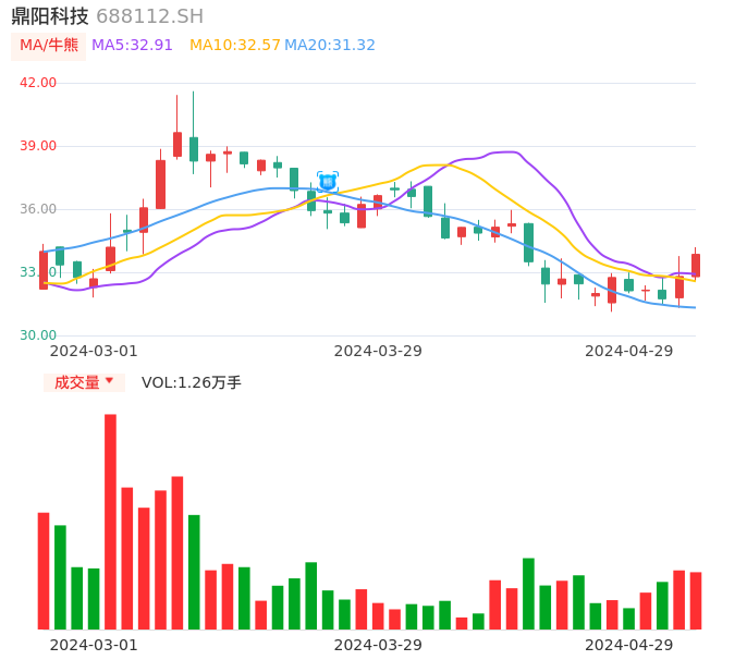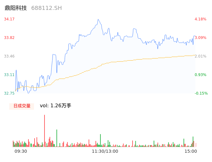 04月29日,鼎阳科技收报33.85,股价涨幅3.20%,成交金额4232.17万元,换手率2.75%。