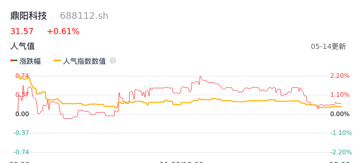 05月14日,鼎阳科技收报31.57,股价涨幅0.61%,成交金额2062.16万元,换手率1.42%。