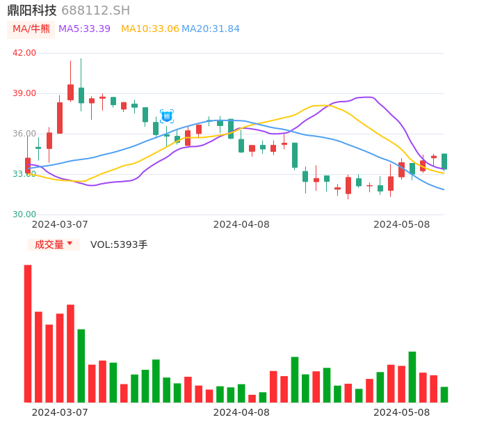 05月08日,鼎阳科技收报33.36,股价涨幅-2.85%,成交金额1809.53万元,换手率1.17%。