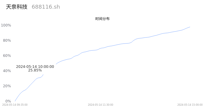 688116天奈科技2024年05月14日成交11.72万手,成交金额3.39亿元,相较昨日放量5152手,换手率3.40%,成交清淡。