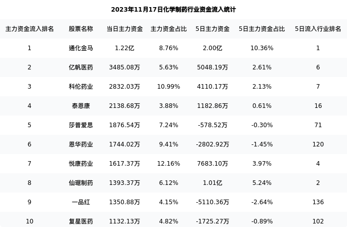 从主力资金流向来看,化学制药行业今日主力资金流入53.37亿元,在所有申万二级行业中排名:39/131。