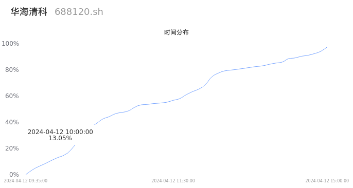 688120华海清科2024年04月12日成交1.11万手,成交金额1.79亿元,相较昨日缩量3333手,换手率0.98%,成交清淡。