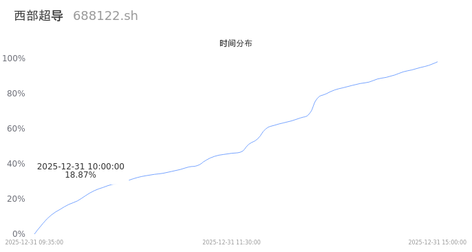根据成交分布分析,该股票当天放量成交,成交清淡。时间上看,早盘前半小时成交量占据当天总成交量的18.87%;价格上看,成交呈现右偏峰。成交分布分析主要研究股票成交的分布特性,不具有预测功能,请知悉。
