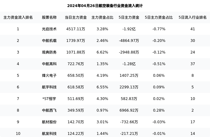 从主力资金流向来看,航空装备行业今日主力资金流入51.17亿元,在所有申万二级行业中排名:40/131。