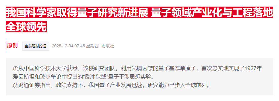 量子科技是建立在量子力学基本原理基础之上,通过对微观粒子量子态(如叠加、纠缠)的主动调控与利用而形成的前沿技术集群,代表着全球科技竞争的战略制高点,是引领未来产业升级与经济社会变革的关键驱动力!